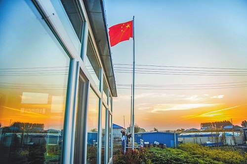 为感谢党的危房改造好政策,吉林省松原市宁江区毛都站镇牙木吐村退伍老兵孙德福每天在自家的新房前升降国旗。孙济 摄